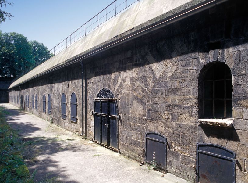 Die bombensichere Kaserne wurde 1889 errichtet und ab 1890 von der Artilleriemannschaft bezogen. Der unter den Batteriestellungen befindliche Bau mit einem etwa fünf Meter starken Gewölbe aus Sandstein, Granitstampfbeton, Sand und Erde umfasst zehn nebeneinanderliegende Räume. Bis zu 400 Soldaten konnten einst darin leben. Eiserne Fensterläden sollten in Kriegszeiten Schutz bieten.
