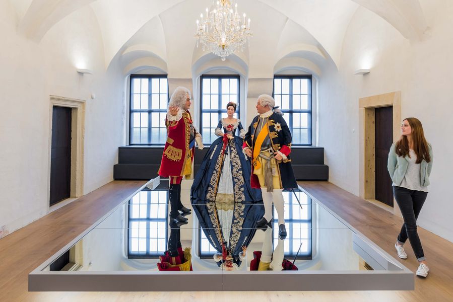 Königstein/Sächsische Schweiz, 5. Januar 2026 (tpr) – Gräfin Anna Karolina Orzelska braucht eine Auszeit. Die verblüffend lebensecht wirkende Figur ist eines der Highlights der Dauerausstellung „In lapide regis – Auf dem Stein des Königs“ auf der Festung Königstein. In einem tiefblauen Seidenkleid mit Volants aus weißer Spitze präsentiert sich die Nachbildung der schönen und klugen Tochter Augusts des Starken Tag für Tag auf dem Spiegelpodest den Besuchern. Und da sie keine Vitrine umgibt, muss sie regelmäßig entstaubt werden – ebenso wie die zahlreichen weiteren Exponate der multimedialen Schau. Ab Mittwoch bleibt die Dauerausstellung für die Revision geschlossen. Für Besucher ist es die Gelegenheit, die historische Wehranlage mit ihren vielfältigen Ausstellungen zum reduzierten Eintrittspreis zu entdecken. Noch bis einschließlich 30. Januar gilt auch für Vollzahler der ermäßigte Eintrittspreis von zehn Euro. Kinder und Jugendliche bis 16 Jahre sind kostenfrei.