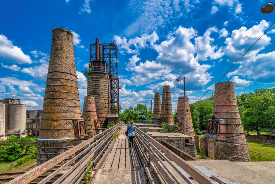 Kathedrale des Kalks: So wird die markante Schachtofenbatterie mit ihren 18 Schloten im Museumspark Rüdersdorf bei Berlin oft genannt. Die imposante historische Kalkbrennanlage ist das architektonische Prunkstück des Ensembles, das mit original erhaltenen Industrieanlagen die faszinierende Geschichte der „Kalkhauptstadt am Rande Berlins“ erzählt. Direkt daneben erstreckt sich ein riesiger, aktiver Kalksteinbruch, der mit seiner Weite und den schroffen Felsen bereits als Filmkulisse diente.